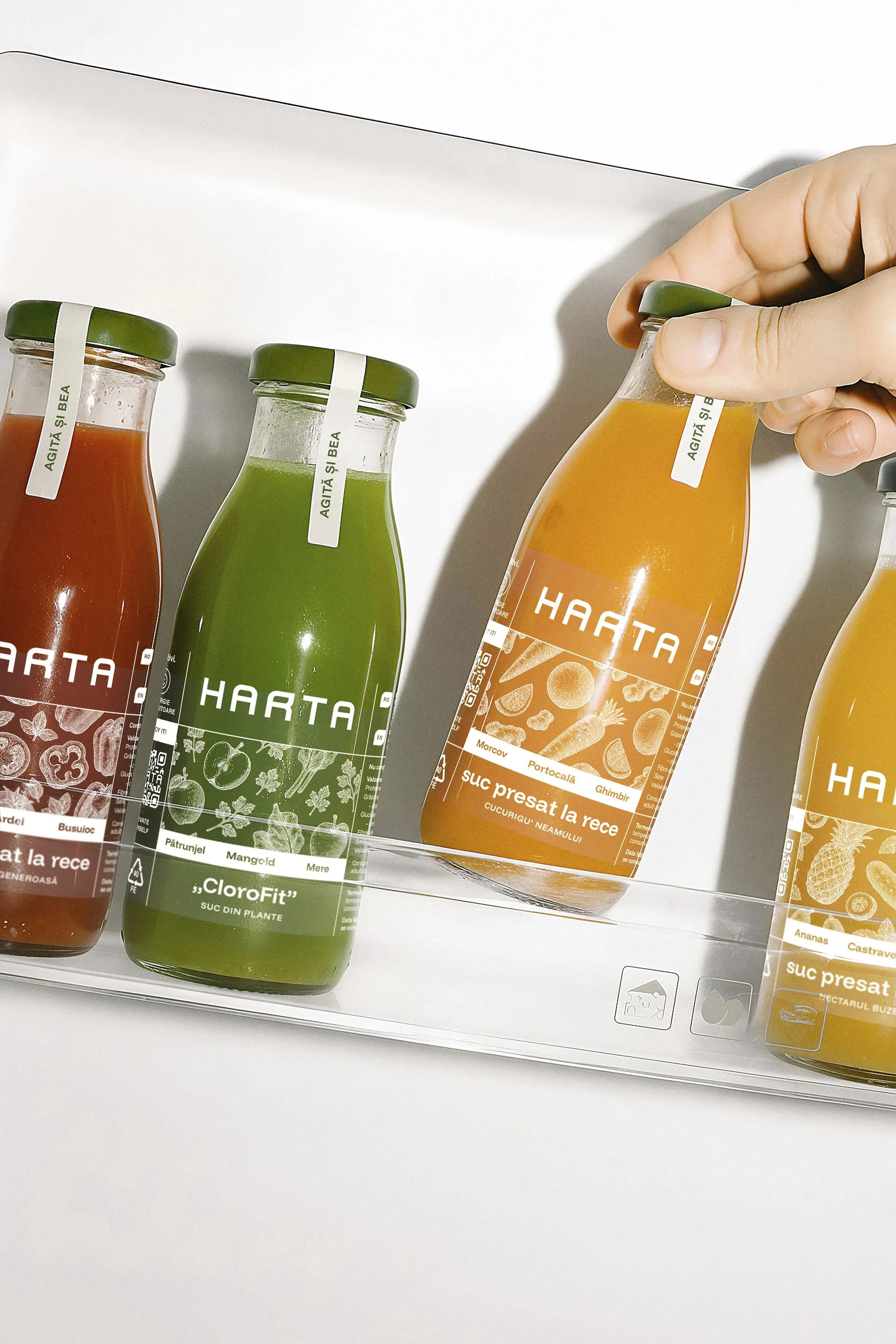 Harta, a Eastern-European wellness brand producing unpasteurized, farm-fresh beverages, struggled to express its authentic philosophy through design. Despite having high-quality products and a strong mission–to help people reconnect with nature and themselves–their visual identity lacked cohesion, emotional depth, and market appeal.
